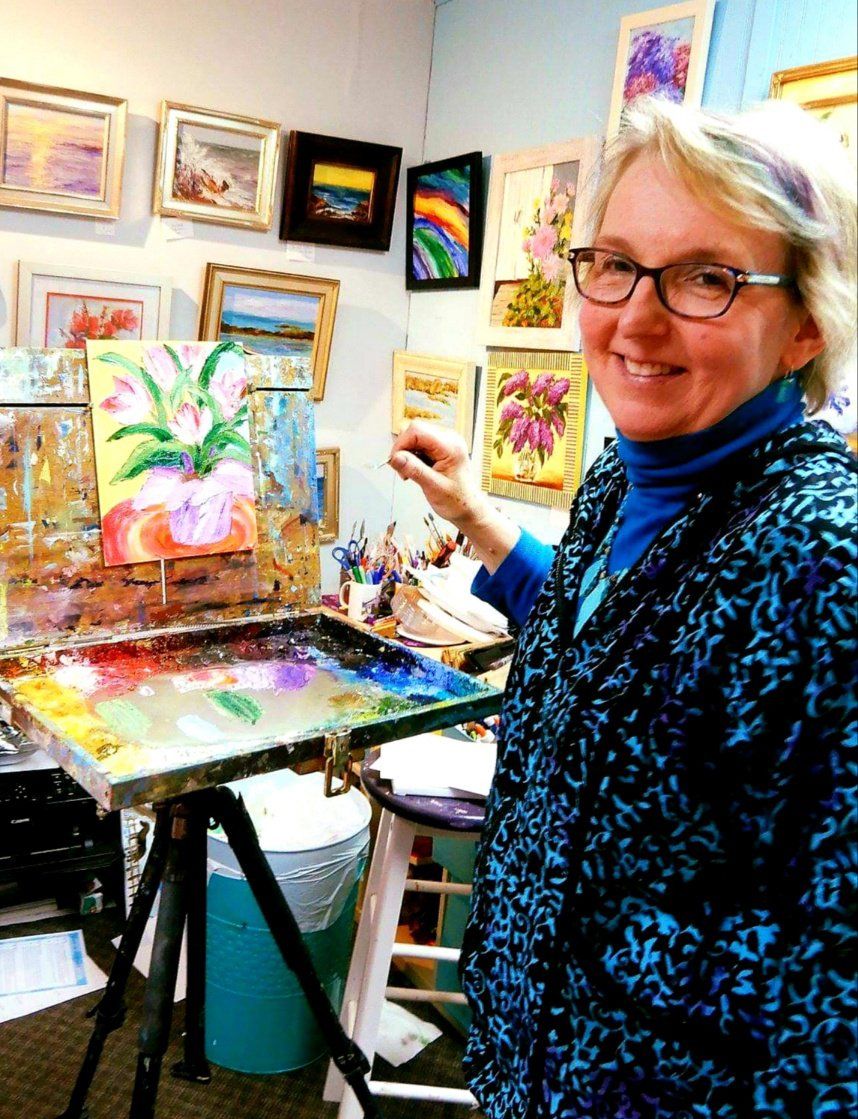 I discovered Monhegan Island in Maine through a workshop andd fell in love with it! I seem to be drawn to Monhegan every fall and I love the Monhegan energy and the focus that a week on the island provides. I painted in Italy and in France with workshop groups - Gary really enjoyed those trips as well! I have an impressionistic style and I primarily paint with a palette knife. I enjoy playing with color and light and expressing my own interpretation of the subject. I generally paint landscapes, especially involving water and rocks, flowers, and local scenes, and I love to paint plein air when I can.
